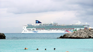Great Stirrup Cay is part of the Berry Islands and is located 62 nautical miles from Freeport, Bahamas. It is an exclusive port of call featured on NCL's Caribbean and Bahaman itineraries. Our tender boat ride will take about 10 minutes to get to the island. The tender boat goes right up to the beach and you walk right off on to the sand. It looks pretty cool and the water is very clear. I just wish the sun would stay out. We staked our claim around a couple of picnic tables and a couple of hammocks.